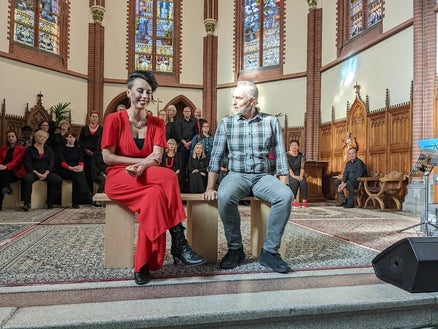 Op zondag 9 oktober jl. ging Helse liefde in première in de kapel van de paters Lazaristen in Panningen. Het werd een gedenkwaardige dag! De genodigden genoten van de voorstelling en waren na afloop vol lof. Enkele quotes: 'meermaals ontroerd', 'ik kom nog een keer kijken' en 'prachtige zang en spel'.